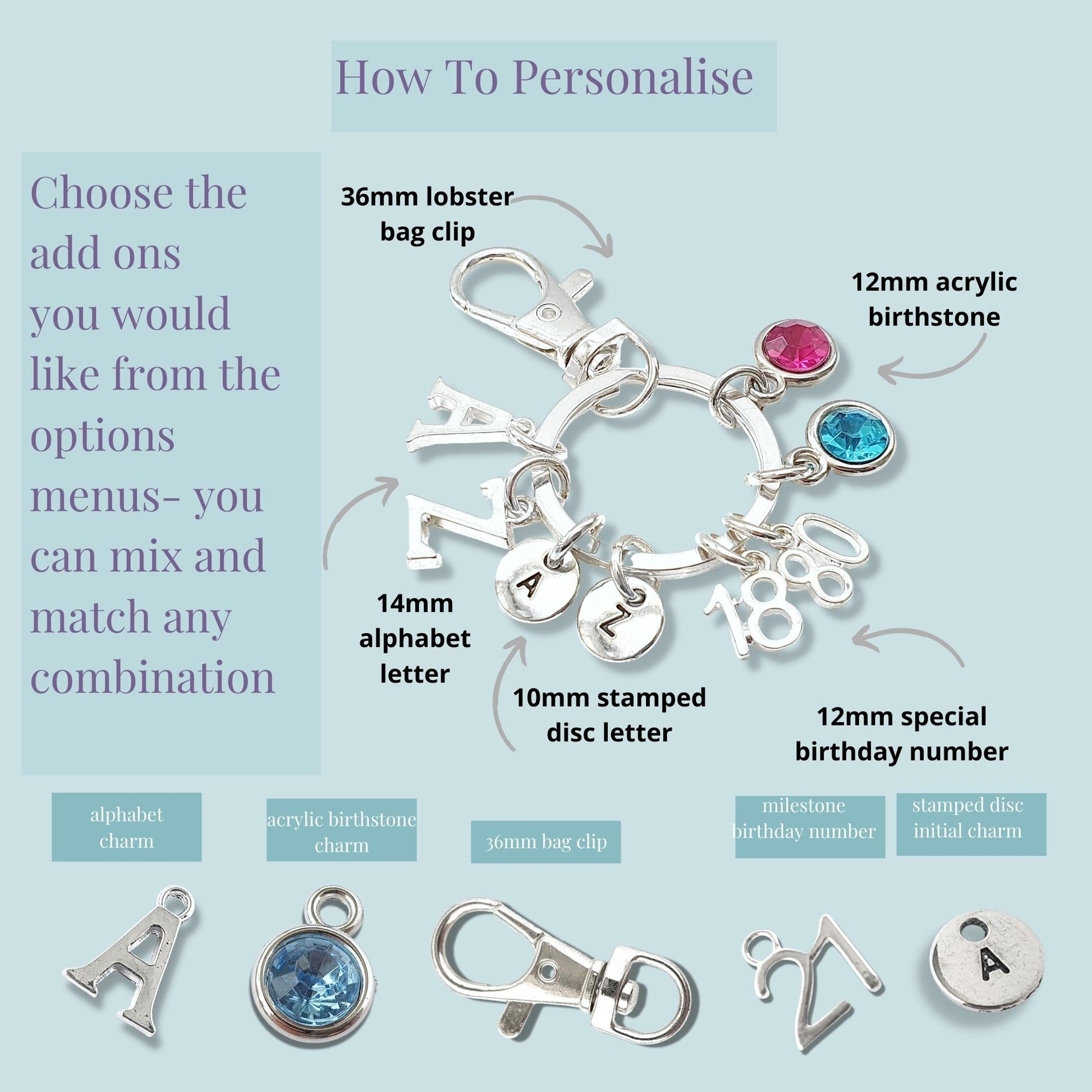 Choose extra charms to create a unique keyring