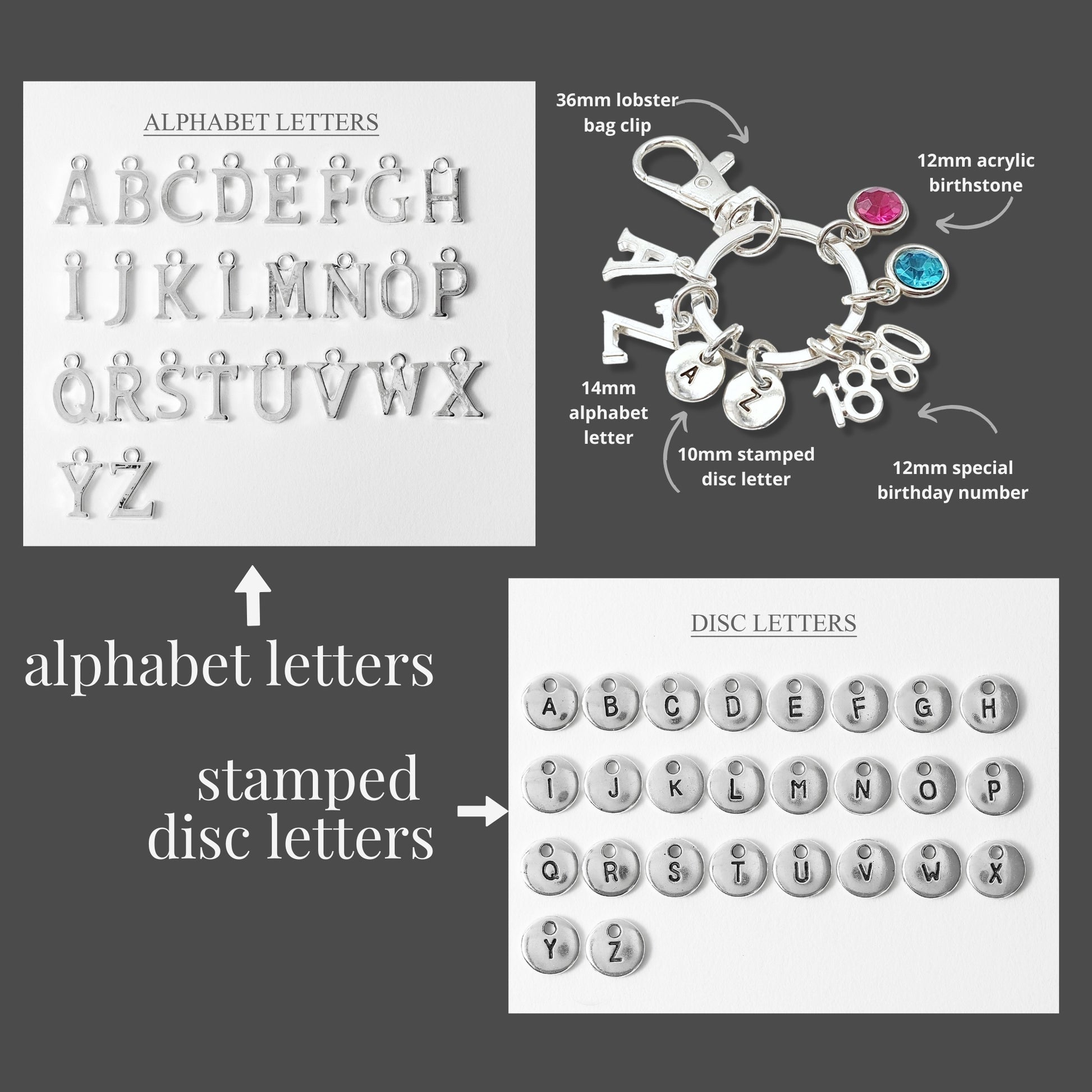 • 14mm silver plated alphabet initial