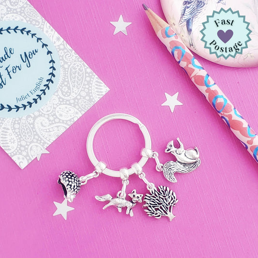 Whimsical Woodland Animal keyring - Silver Plated Charms