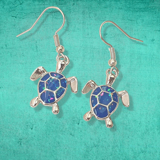 Sea Turtle Earrings - Silver and Opal