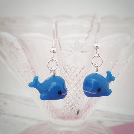 Blue Whale Earrings - Silver