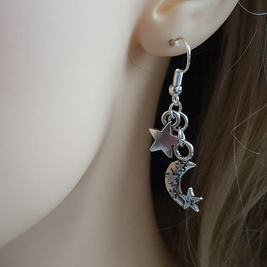 Moon and Stars Earrings - Silver