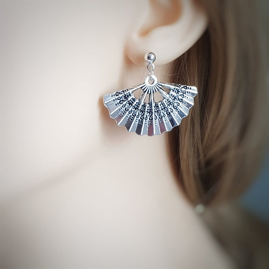 Oriental Fan Earrings - Silver