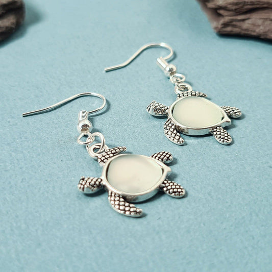 Seaglass Turtle Earrings - Silver
