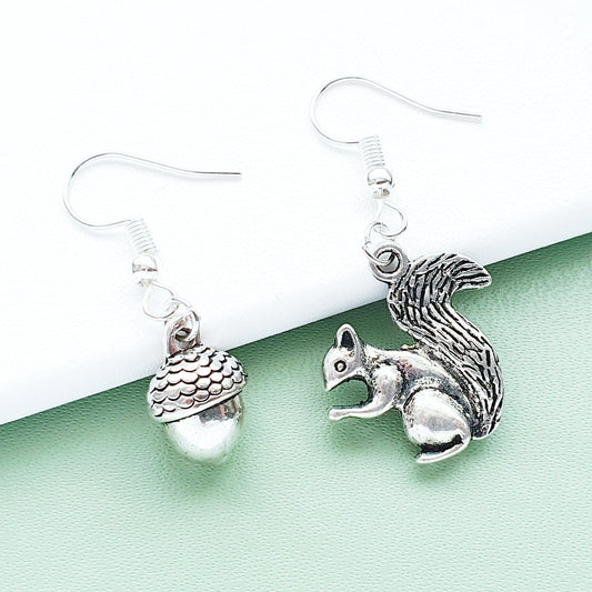Squirrel and Acorn Earrings - Silver