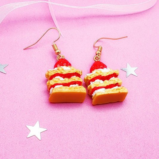Strawberry Cake Earrings - Silver and Resin