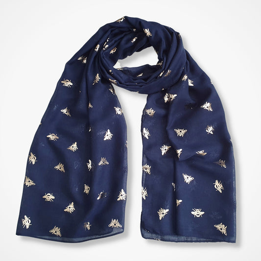 Foil Bee Scarf - Navy & Rose Gold