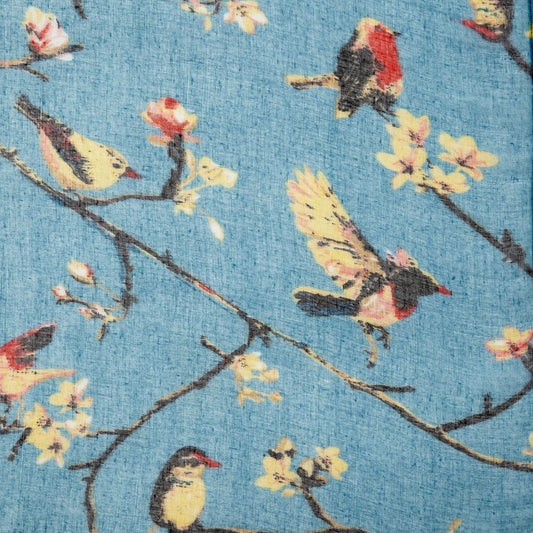 Red Robin & Berries Scarf – Soft Woven Aqua Fabric with Festive Print