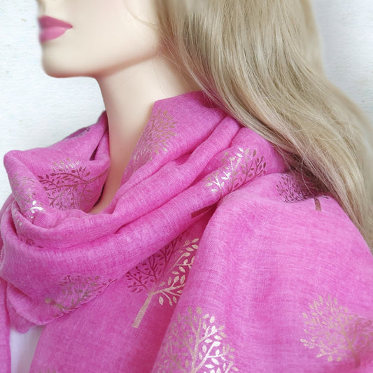Foil Mulberry Tree Scarf - Fuchsia Pink