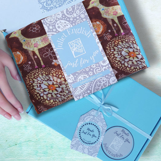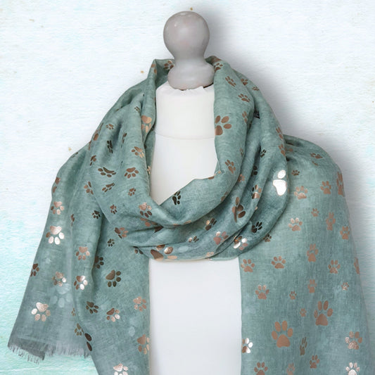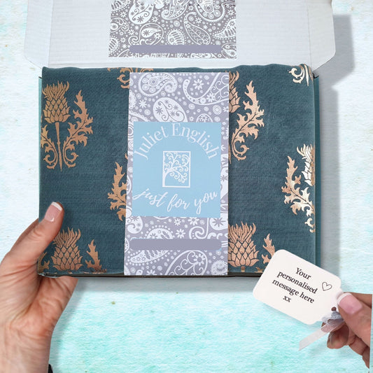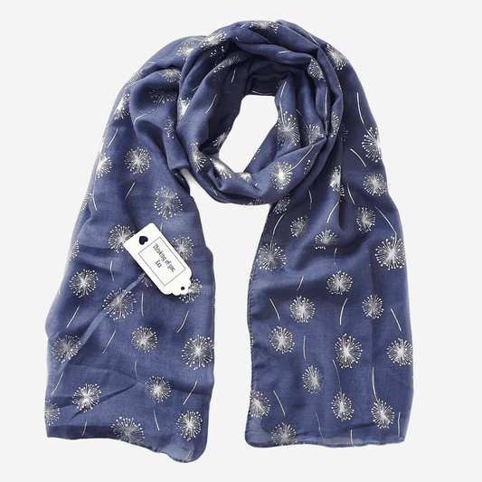 Foiled Leafy Print Women's Scarf in Blue~ Personalised Gift for Her