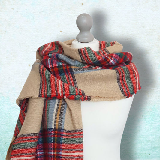 Plaid Blanket Scarf - Red, Beige, Green & Blue