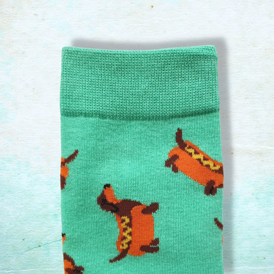 Cute Dachshund Hot Dog Socks - Apple Green Novelty Footwear for Dog Lovers