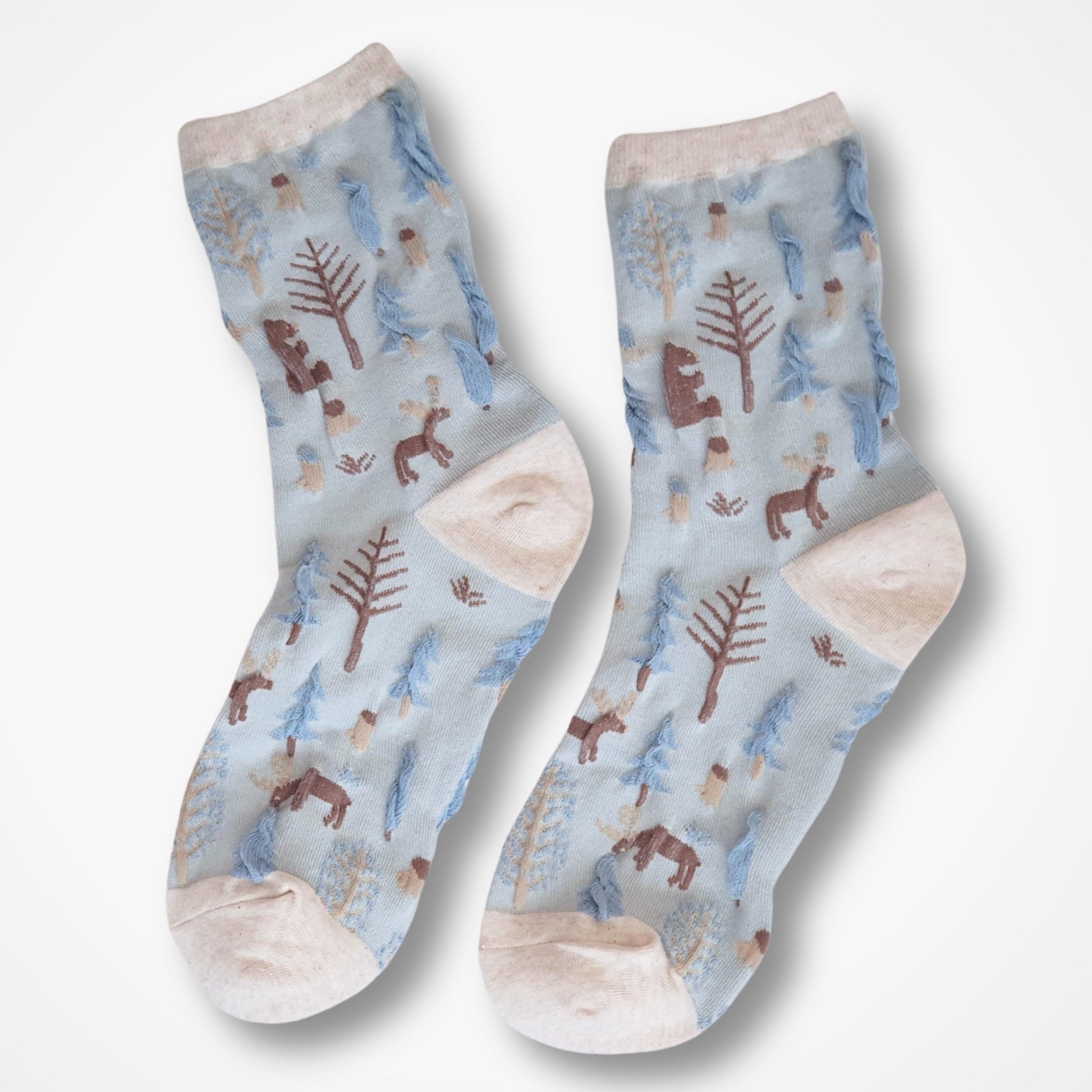Socks with forest scene ~ a pair of comfortable and durable cotton and spandex socks to make cute footwear, a perfect gift for woodland lovers, or for yourself! Super soft and comfortable. To fit UK sizes 4-7