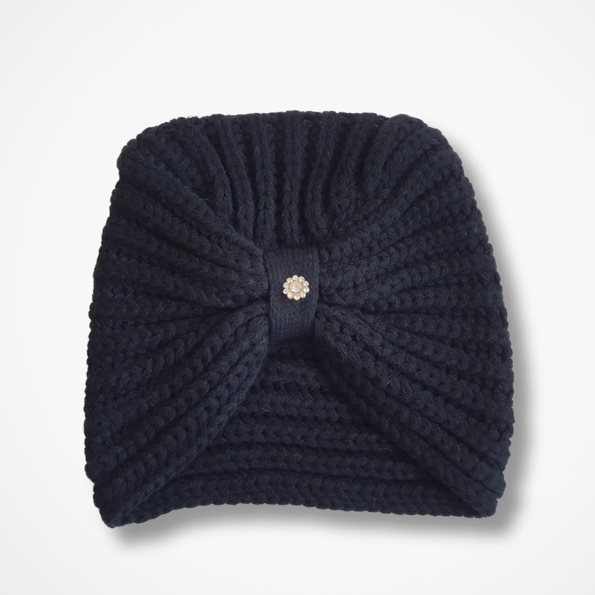 Black beanie bling hat. On a cold day there's nothing nicer than to pull on a cute hat that's going to keep you snug and keep out the winter chill. We love the colour of this sweet turban style beanie. There's a little bit of bling to add some glamour, so whether you are out walking the dog, doing your horse duties or strolling into town, you can look fabulous.
