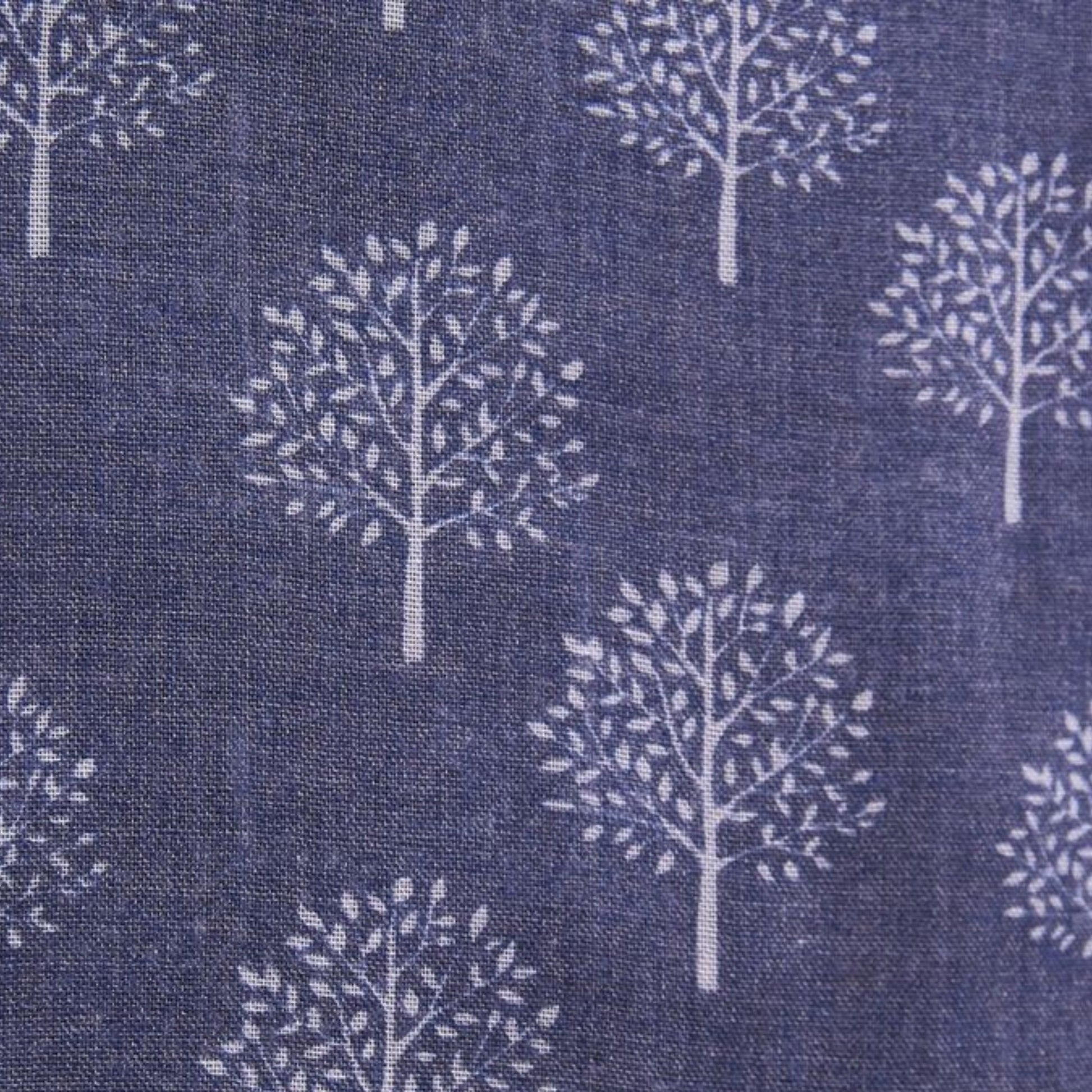 • denim blue background with white mulberry tree print.