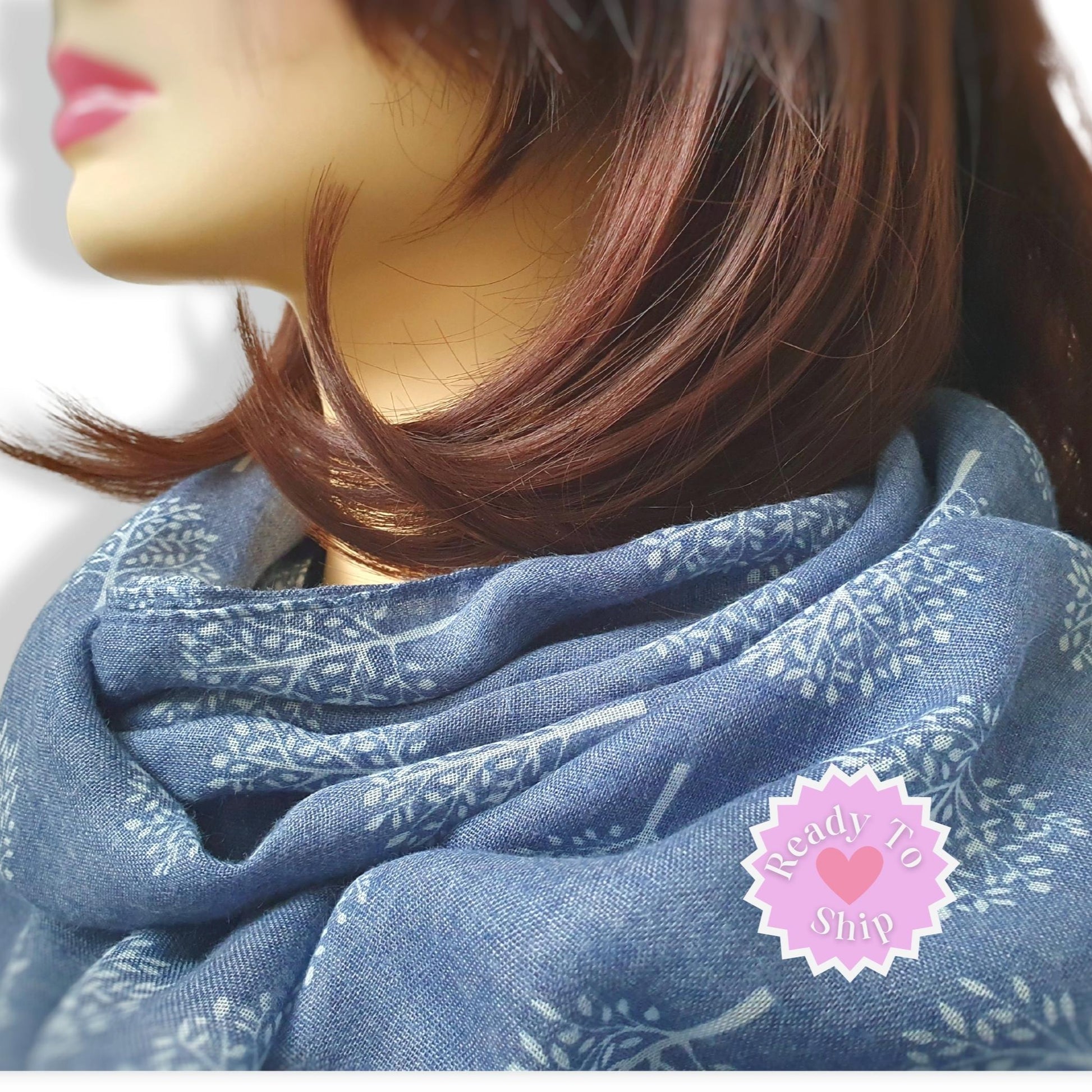 Tree Of Life Scarf, an attractive women's scarf ideal for gifting. Boasting a white mulberry tree design on a denim blue background, this lightweight wrap can be used as a shawl or wrap, a headscarf, or even as a belt. It makes a great fashion accessory for any woman, and can be personalised with a custom gift tag message in time for birthdays, Christmas, or Mother's Day.