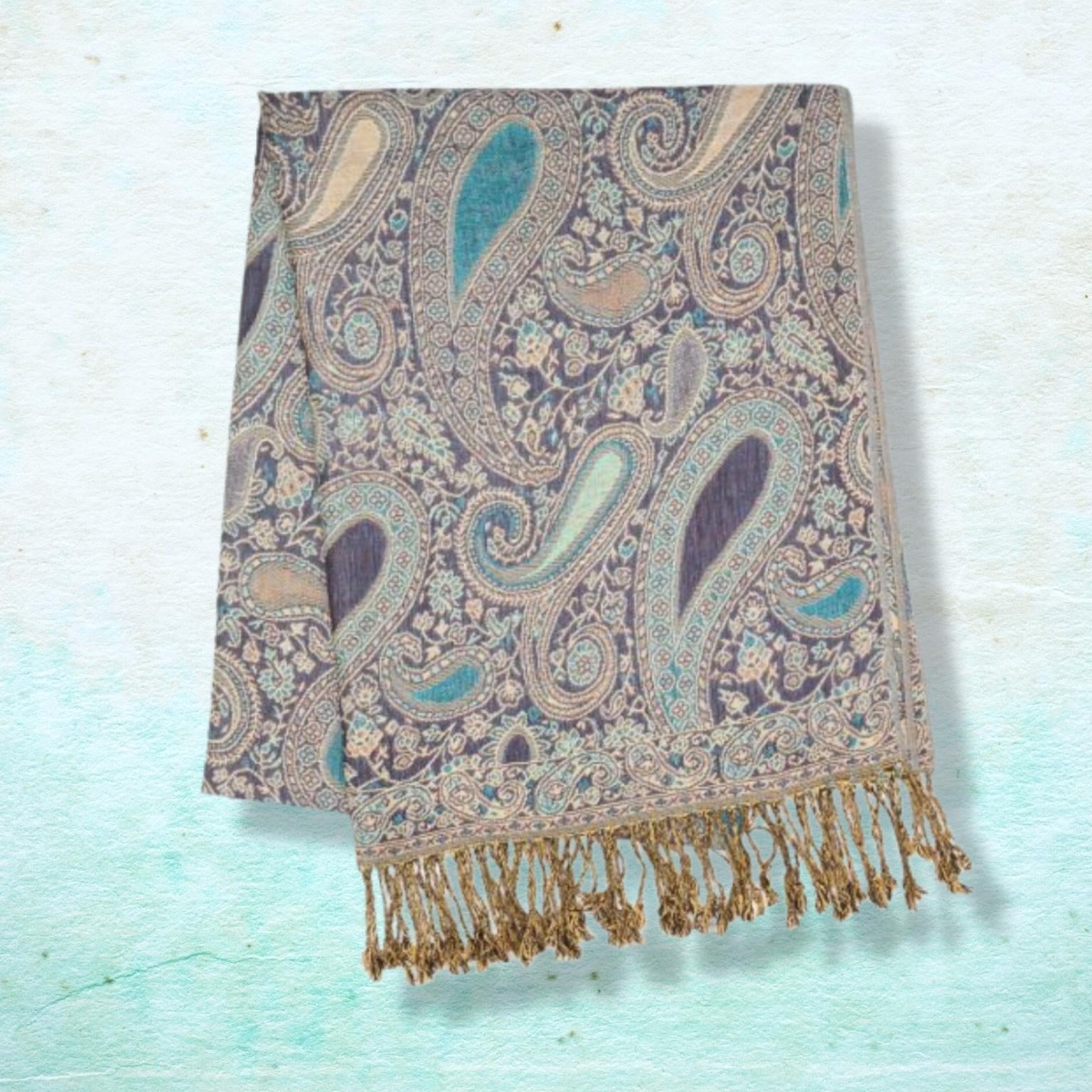 Beautiful purple Paisley Woven Scarf for Ladies, a must-have accessory that brings together elegance, warmth, and style. This cosy pashmina style wrap is perfect for any season, keeping you snug and fashionable wherever you go. Its exquisite paisley pattern adds a touch of timeless charm to any outfit. This scarf is not only a thoughtful women's gift idea, but it also comes ready for gift giving. And to make it even more special, you can customise this scarf to make it truly unique. Stay fashion-forward and wrap yourself in luxury with this stunning Woven Scarf for Ladies.