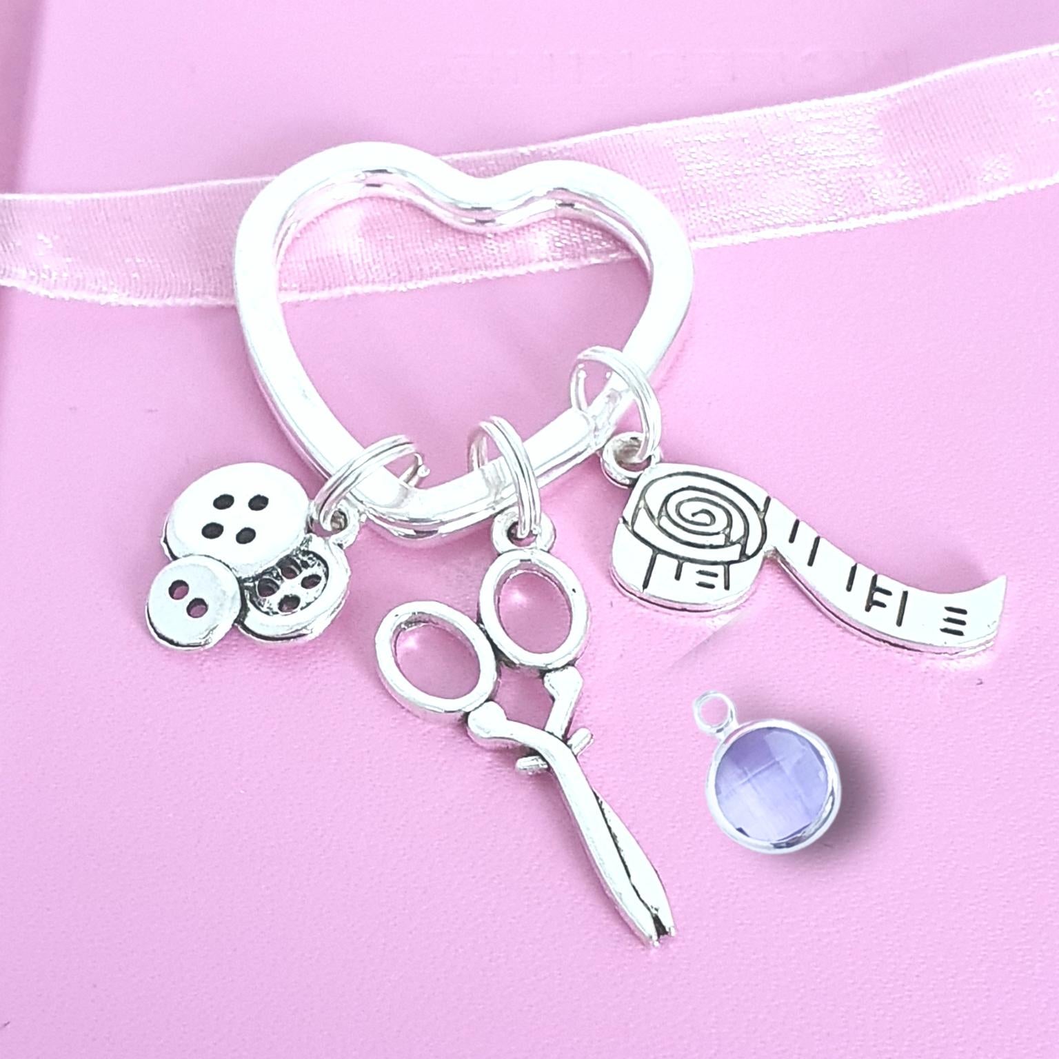 Handmade cute little sewing charm keyring, perfect for a dressmaker, seamstress or dewing lover. This lovely heart shaped keyring would make a thoughtful little gift for a special birthday, will bring a smile to mums, grandmas or other loved ones.