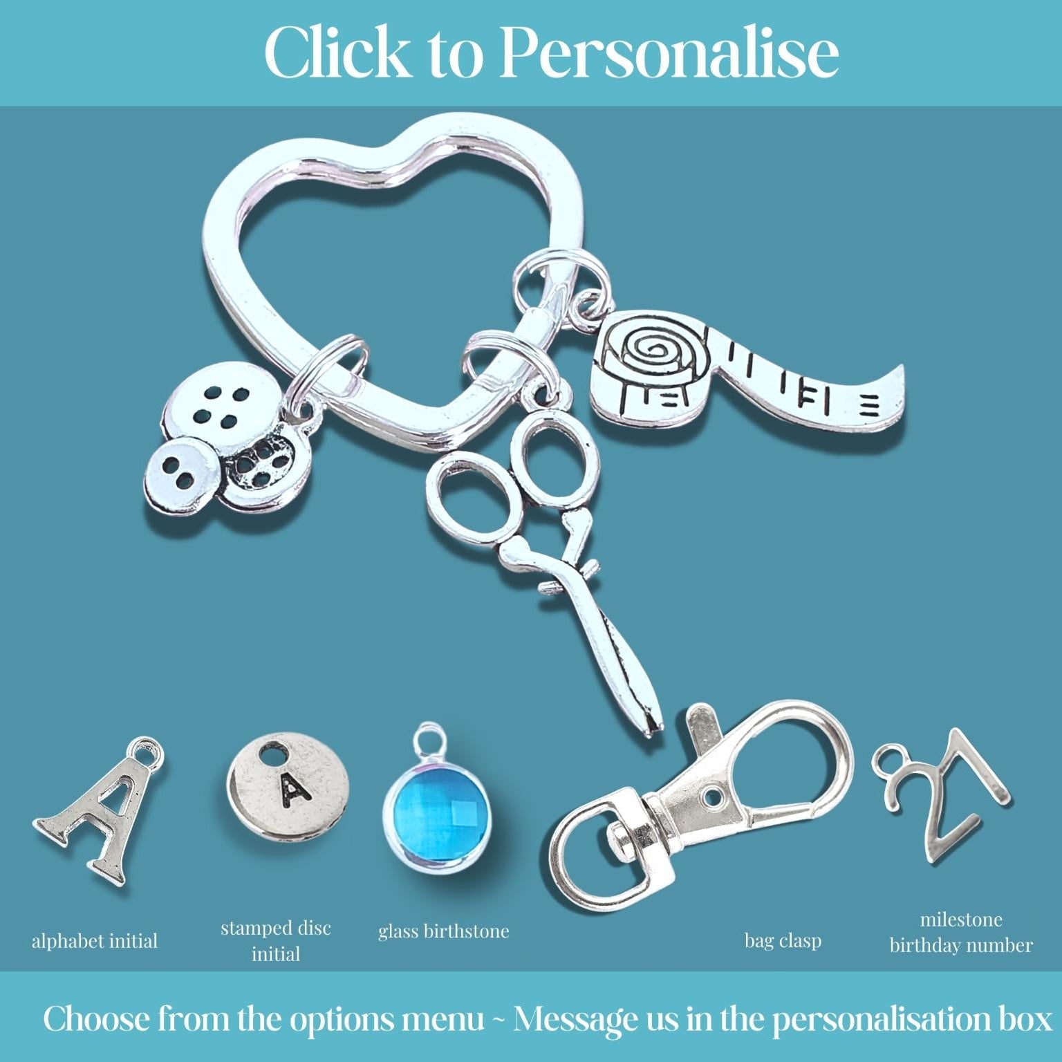 Choose extra charms to create a unique keyring